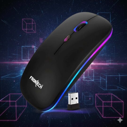 FRONTECH Wireless Mouse with Bluetooth 5.0 & 2.4 Ghz Dual Wireless Connectivity, Rechargeable Battery, Backlit Effect, Adjustable DPI up to 1600 Compatible with Laptop, MacBook, PC.(MS-0057)