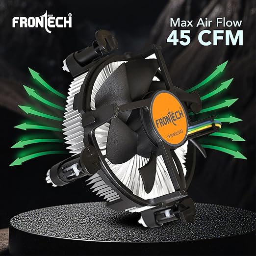 FRONTECH 775/1155 CPU Cooling Fan with Universal Socket & Heat Sink for Better Air Circulation, Super Silent, De-Vibrating, HS Sunflower Design, (CPF-0002, Black)