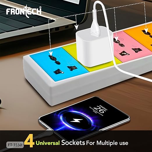 Be the first to review “FRONTECH FT-3550 Power Strip with 4 Universal Sockets | 3M Extension Cord, Safety Switch, Fuse Protection, Wall Mount | Multi Plug Extension Board (FT-3550)”