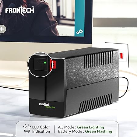 FRONTECH UPS Electra Plus 600VA/360W, Uninterrupted Power Supply System, Maintenance Free Battery, LED Indicator, Power Backup & Protection for Home/Office PC, Desktop and Other Electronics, (2564)