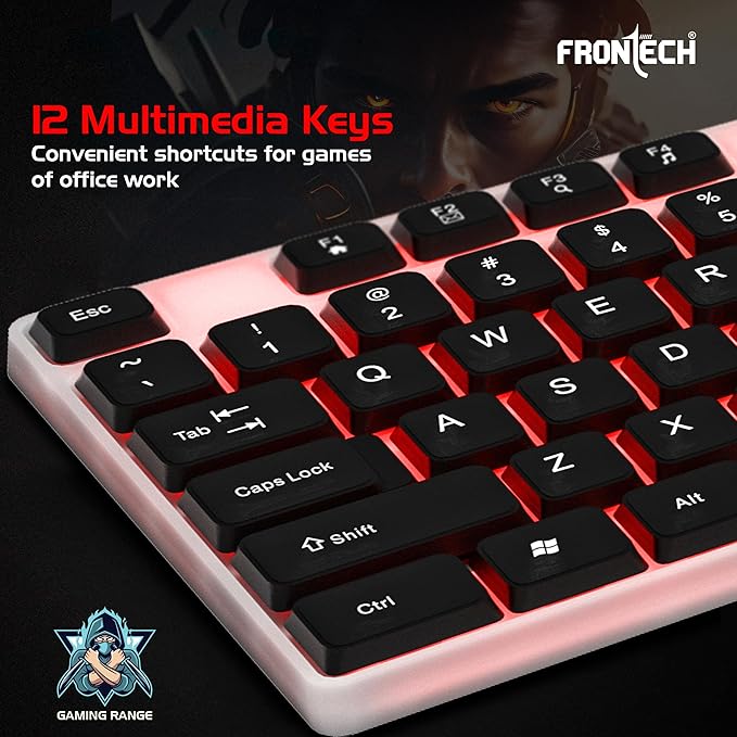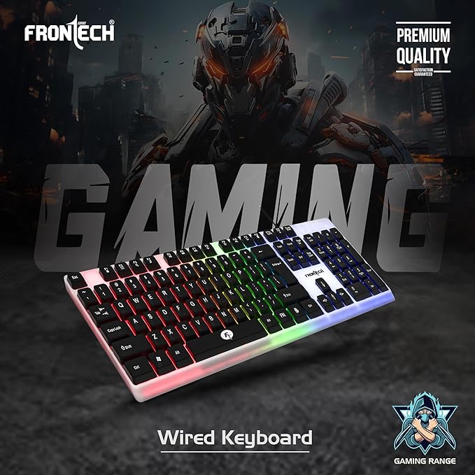 Be the first to review “FRONTECH Wired Gaming Keyboard with 104 Keys | Rainbow Backlight Effect | Membrane Keys with Retractable Stands | USB Plug & Play | Ergonomic Design | Easy to Use (KB-0042, White & Black)”