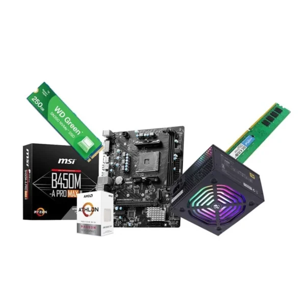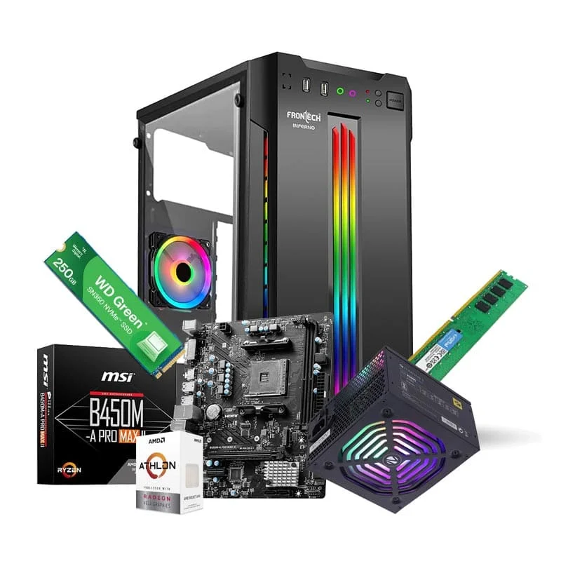 Prebuild PC Build | AMD Athlon 3000g | 8GB DDR4 Ram | Radeon Vega 3 Graphics | 250GB Nvme SSD | 500W Power Supply Tower PC