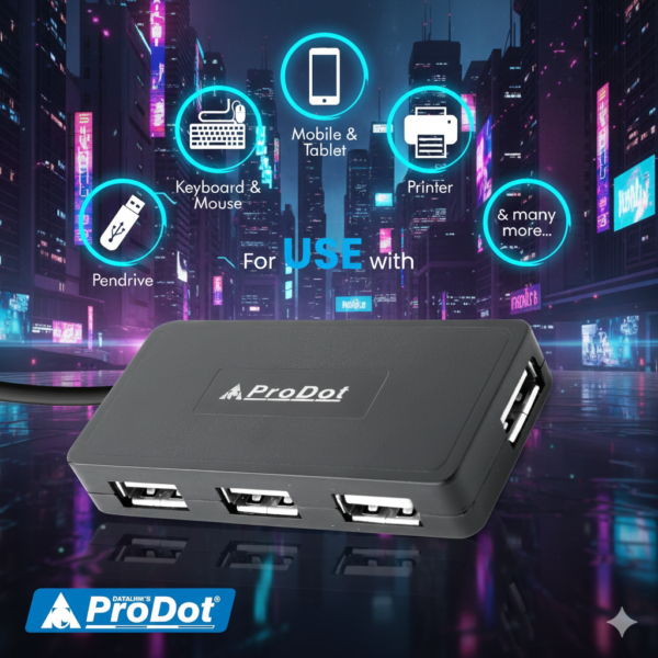 - Made In India: ProDot USB hubs are ‘Made In India’ products, offering value for money, premium quality, and complete compatibility with USB 2.0 specifications. Ideal for laptops or desktops