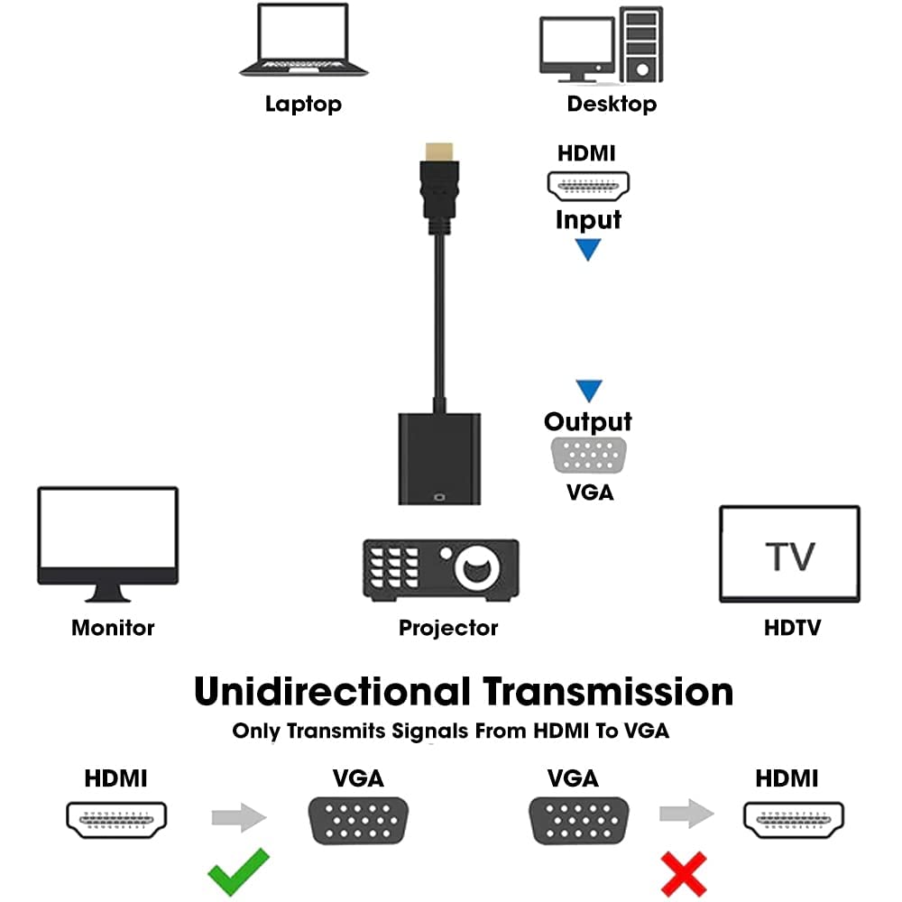 - 【HDMI to VGA】: Please note that this cable only converts from HDMI to VGA, not VGA to HDMI. It allows you to connect an HDMI compatible device to a monitor or projector with a VGA port easily. A VGA cable is required for this purpose.