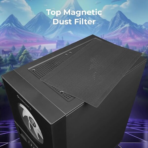 • Magnetic Dust Filter: This chassis features a top magnetic dust filter to effectively prevent dust buildup on the fans